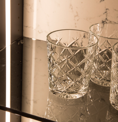 深みのある輝きをたたえる鏡面扉はストレージに高級感を与え、空間のアクセントとなります。