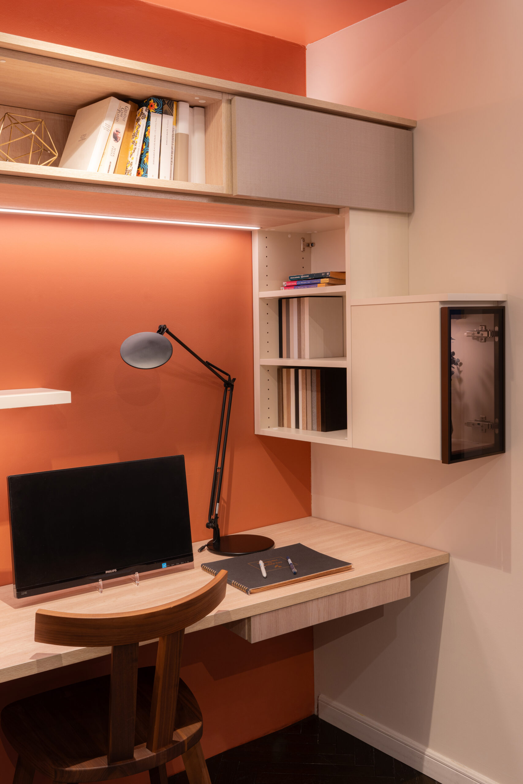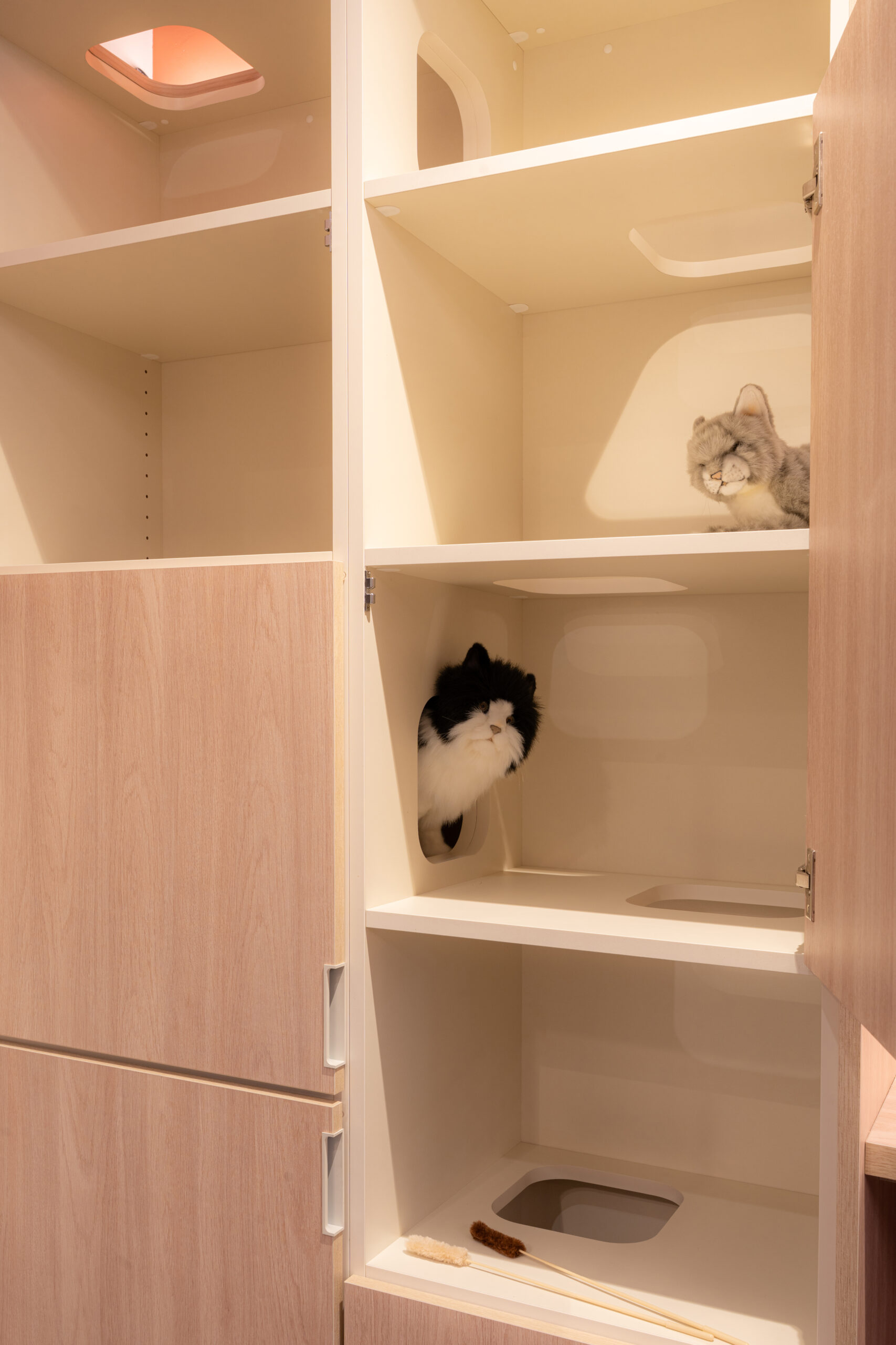 壁やユニット2方向のインローによる固定の飾り棚、厚さ=30mm。